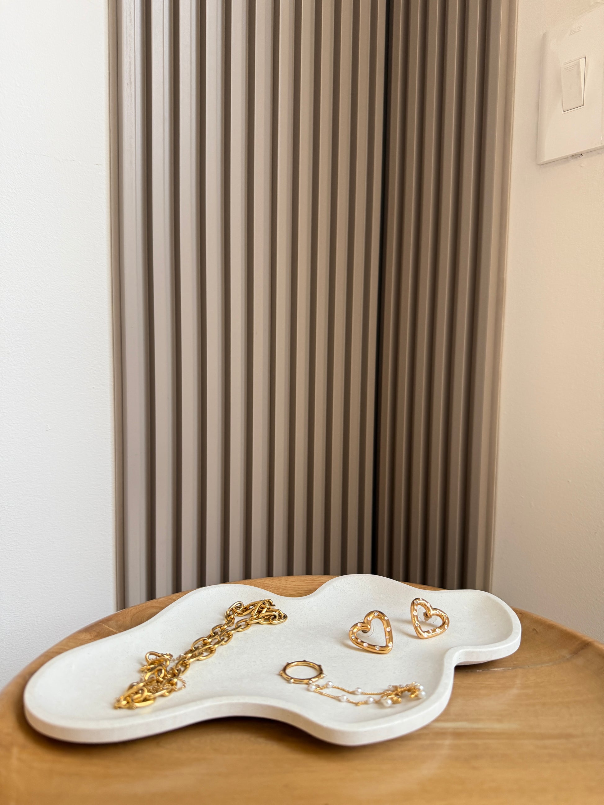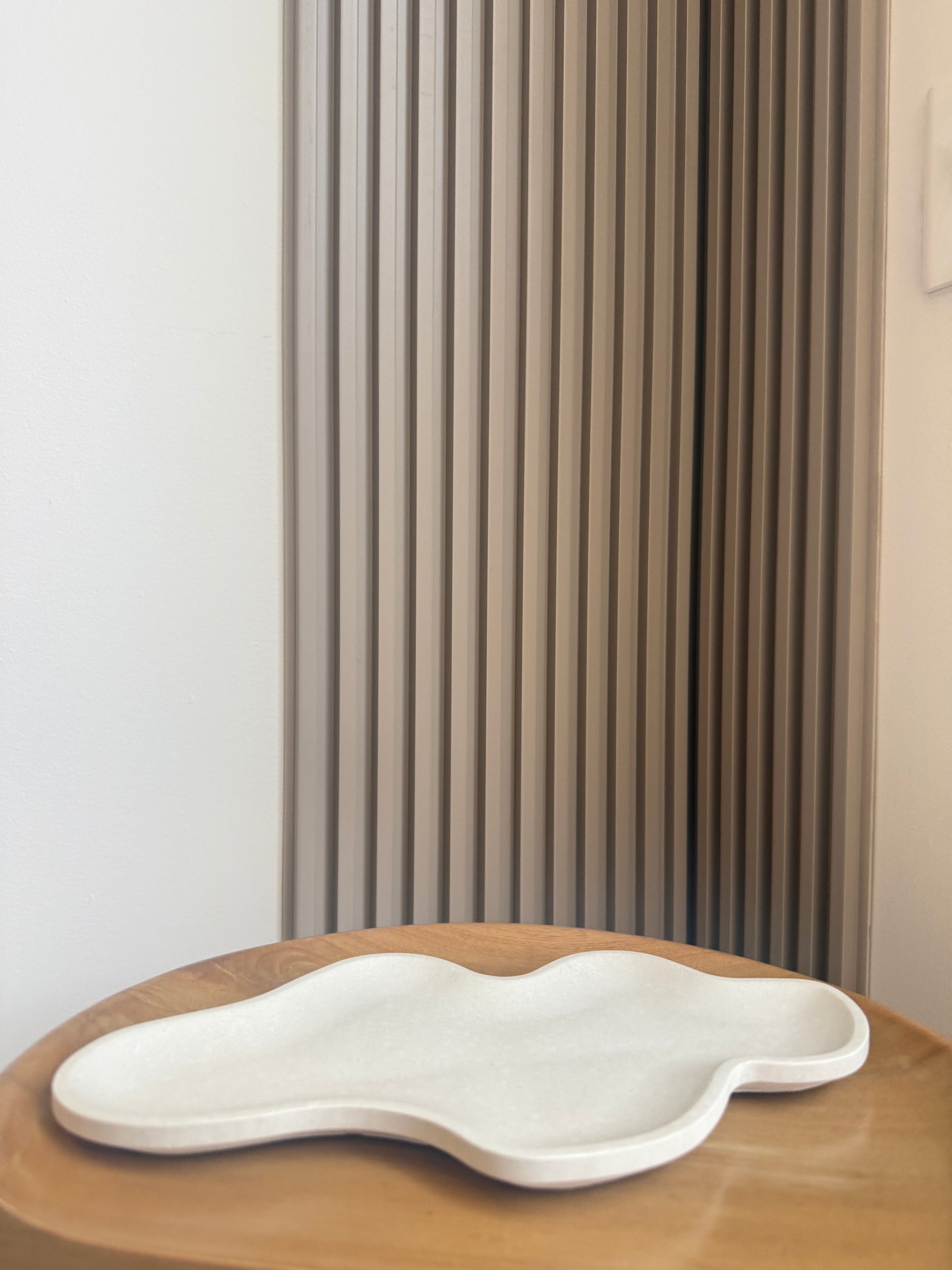 Bandeja de concreto de formas curvas, diseñada para adaptarse a tu estilo y a lo que quieras expresar en cada espacio. Su diseño orgánico y minimal la convierte en la base perfecta para ordenar tus accesorios, acompañar flores secas o complementar velas decorativas y aromáticas, creando composiciones llenas de calma y armonía.