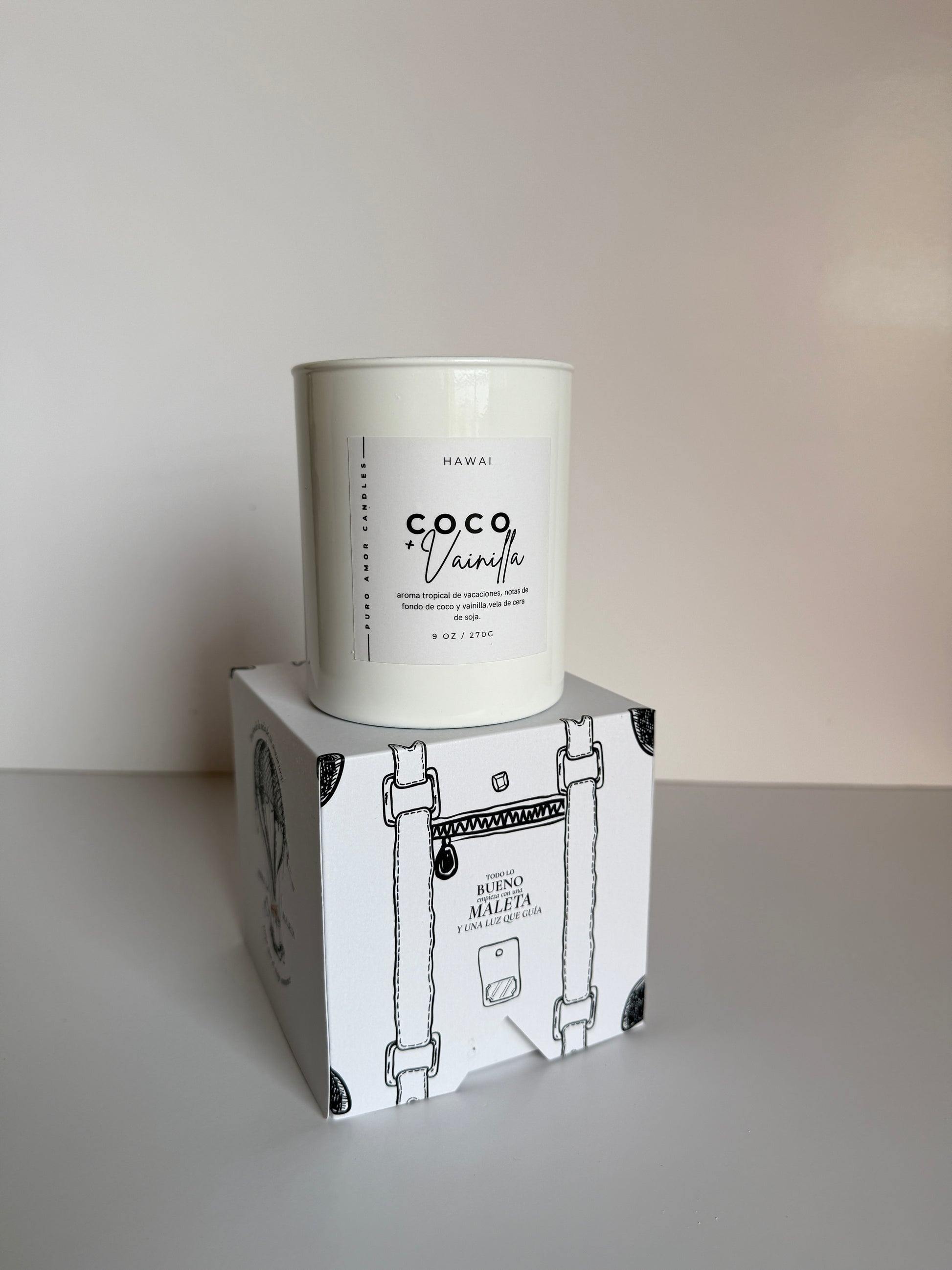 Vela aromática en envase de vidrio, con pabilo de madera natural; te brinda una sensación relajante con sus deliciosos aromas. Incluye una hermosa caja con diseño de maleta, para invitarte a viajar y dejarte llevar por un tu imaginación.