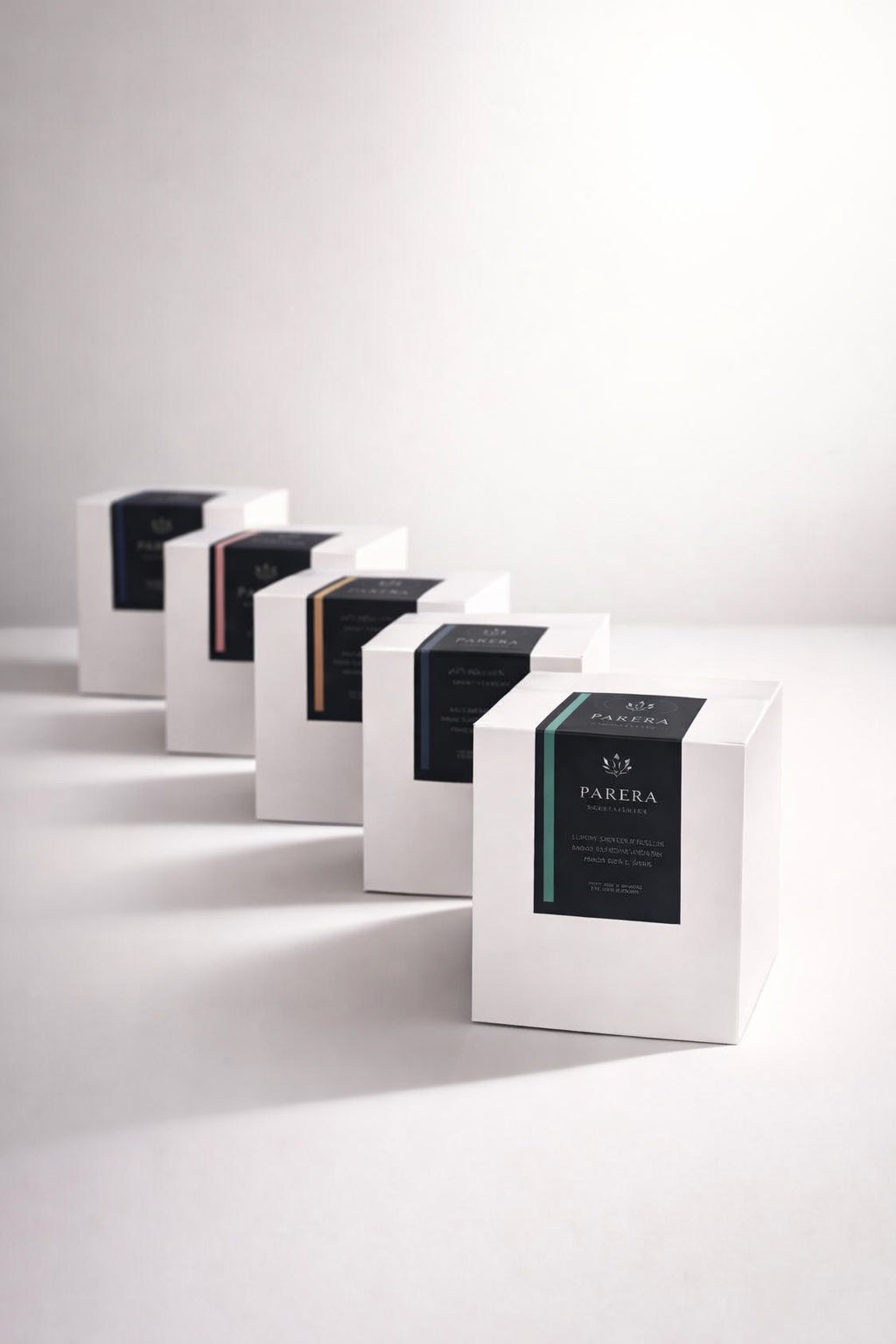 • 5 velas aromáticas en envase negro mate. 220g c/u.