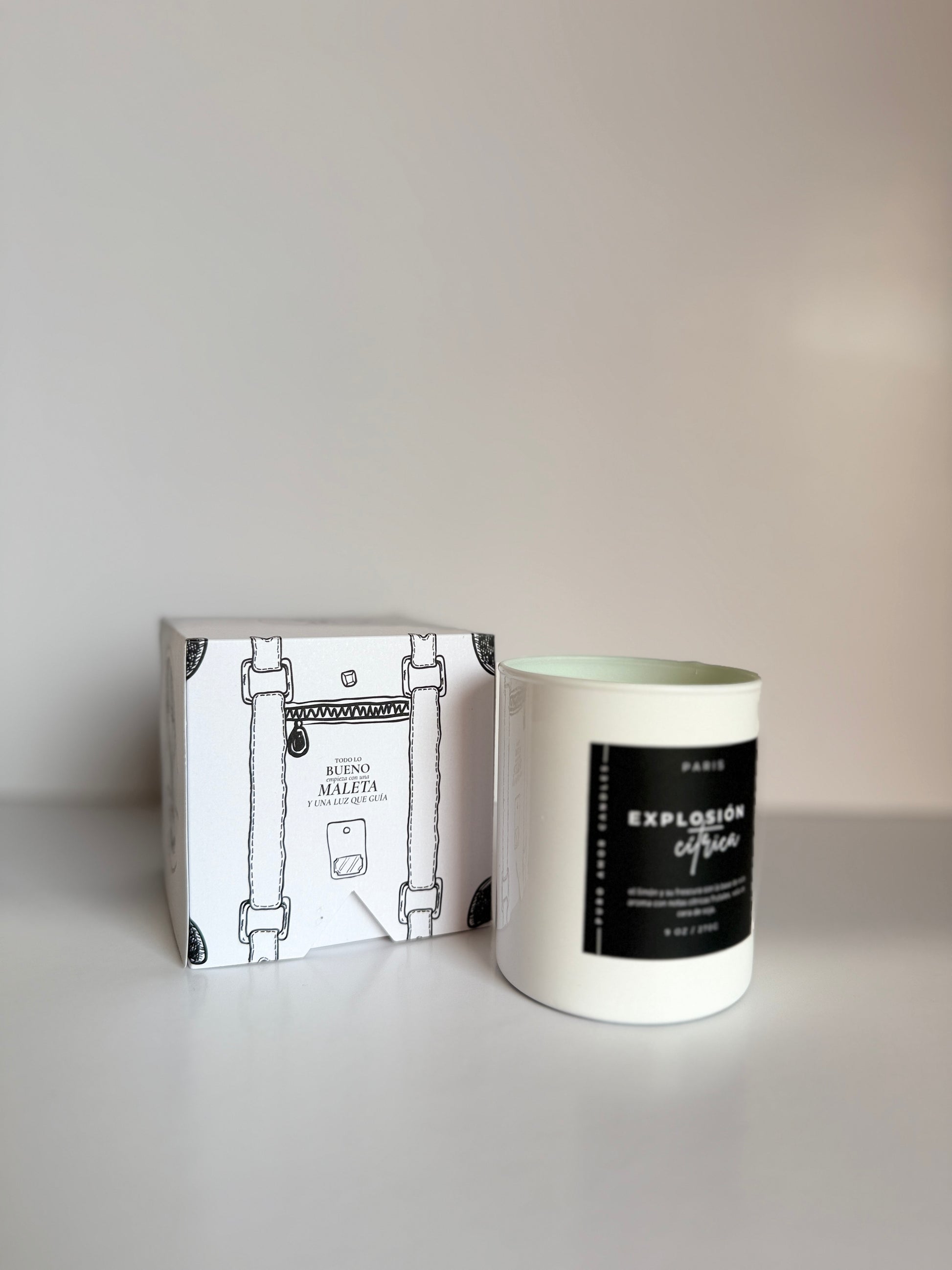 Vela aromática en envase de vidrio, con pabilo de madera natural; te brinda una sensación relajante con sus deliciosos aromas. Incluye una hermosa caja con diseño de maleta, para invitarte a viajar y dejarte llevar por un tu imaginación.